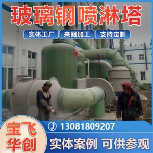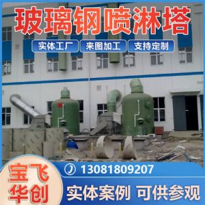 rn玻璃钢喷淋塔分单塔体和双塔体。采用圆形塔体,用法兰分段联接而成。具体由贮液箱、塔体、进风段、喷淋层、填料层、旋流除雾层、出风锥帽、观检孔等组成。